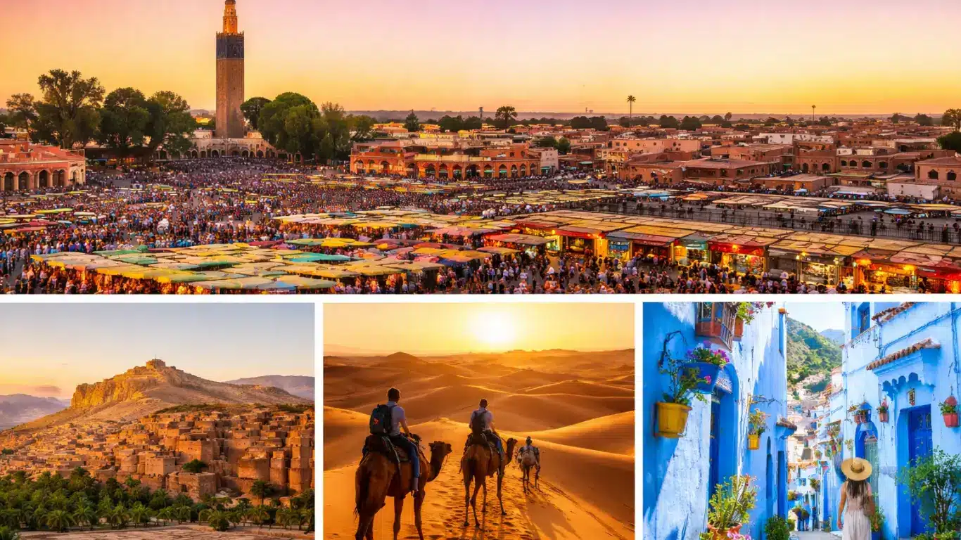 Il Marocco è pieno di luoghi straordinari da visitare. A Marrakech, non perdere il Palazzo Bahia e la Moschea Koutoubia, simboli della città. A Fes, immergiti nelle stradine storiche della medina, tra souk e monumenti antichi. Nel deserto del Sahara, vivi l’avventura su cammelli tra le dune di Erg Chebbi, cena attorno al fuoco e notte sotto le stelle. Ammira la Kasbah di Ait Ben Haddou, famosa anche per il cinema, e passeggia tra le strade blu di Chefchaouen. Rilassati nei Giardini Majorelle o visita la maestosa Kasbah degli Udayas a Rabat. Dal deserto alle antiche città imperiali, questo itinerario offre un’esperienza completa e indimenticabile.