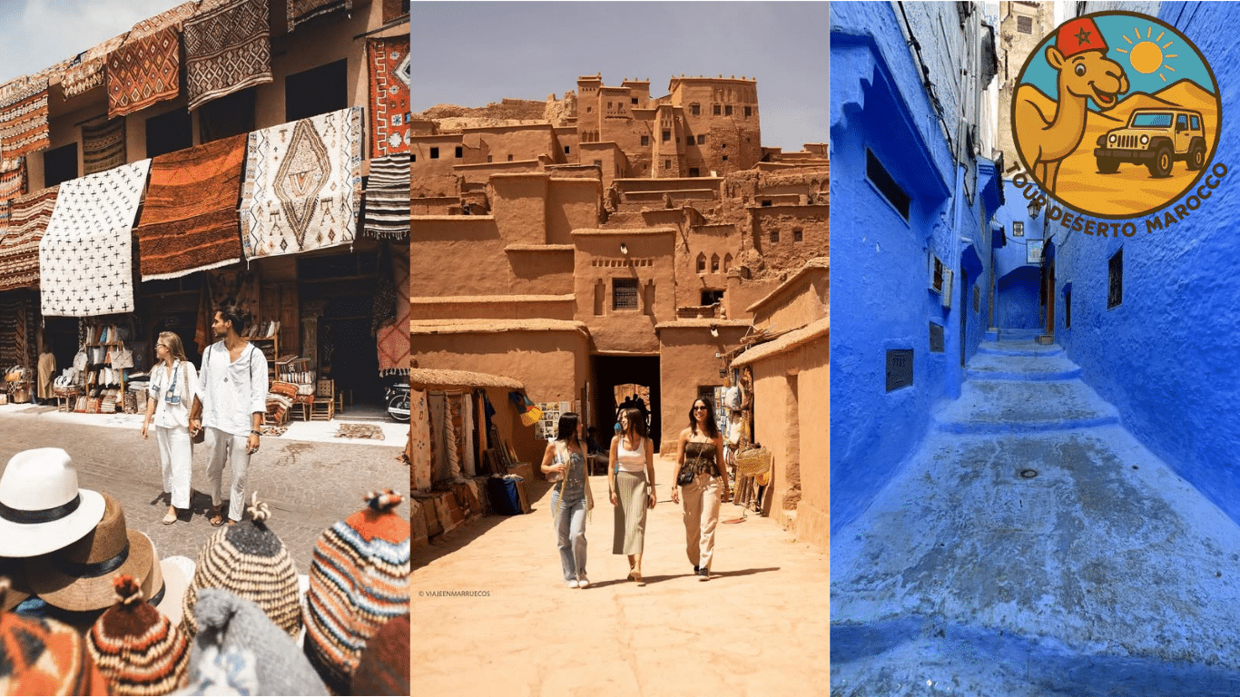 Vivi l’anima autentica del Paese con tour delle città marocchine che ne mettono in risalto la cultura, la storia e l’architettura straordinaria. Dalle medine storiche di Fes e Marrakech, alla bellezza costiera di Essaouira, fino all’eleganza moderna di Casablanca, ogni città combina tradizione e contemporaneità. Passeggia nei colorati souk di Jemaa el-Fnaa, ammira la Moschea Koutoubia, ed esplora le rovine romane di Volubilis vicino a Meknes. A Rabat, visita i palazzi reali e i giardini tranquilli, mentre Chefchaouen incanta con le sue stradine blu. Questi tour sono perfetti per chi vuole scoprire la cultura marocchina, assaggiare piatti tradizionali e ammirare edifici straordinari. Che tu esplori città antiche o siti UNESCO come Aït Ben Haddou, i tuoi 5 giorni in Marocco saranno un’esperienza che non dimenticherai.
